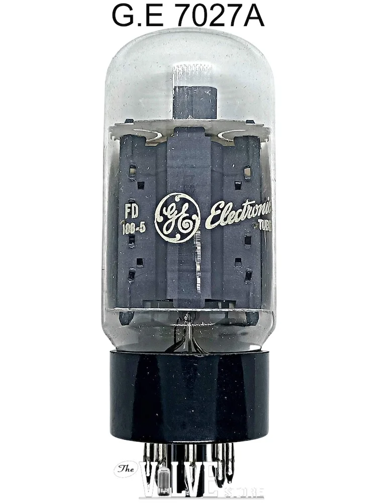 The General Electric 7027A is a NOS American power pentode closely related to the 6L6GC but with a different octal pinout, making it specific to amplifiers designed for this type. GE’s American manufacture is of excellent quality, typical of their robust industrial valve production.