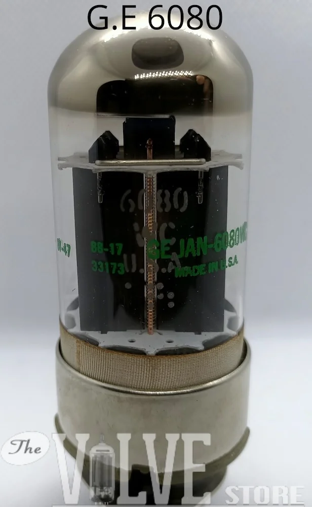 The General Electric JAN 6080WC is a mil-spec twin triode built to Joint Army-Navy (JAN) standards — one of the most rigorous specifications for vacuum tube manufacture. GE’s US production is particularly sought after for its robust construction and excellent long-term reliability.