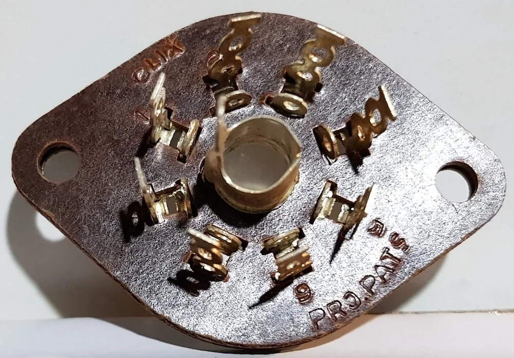 Loctal valves including the 7N7, 7AF7, 14N7, and others were used in a variety of vintage radio and audio equipment. Replacement sockets are increasingly scarce, making them essential for restorers working on equipment specifying this base type.