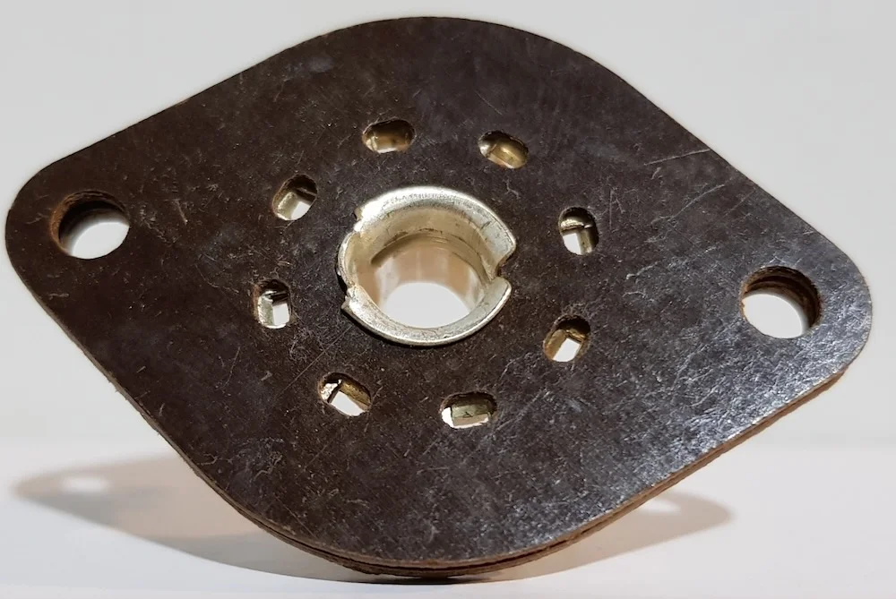 The Loctal B8G socket is an 8-pin socket designed to accept valves with the loctal base style, a proprietary base type developed by Sylvania in the late 1930s. Loctal valves feature a locking mechanism that engages with the socket, providing a secure connection resistant to vibration — a key advantage in aircraft and military applications.