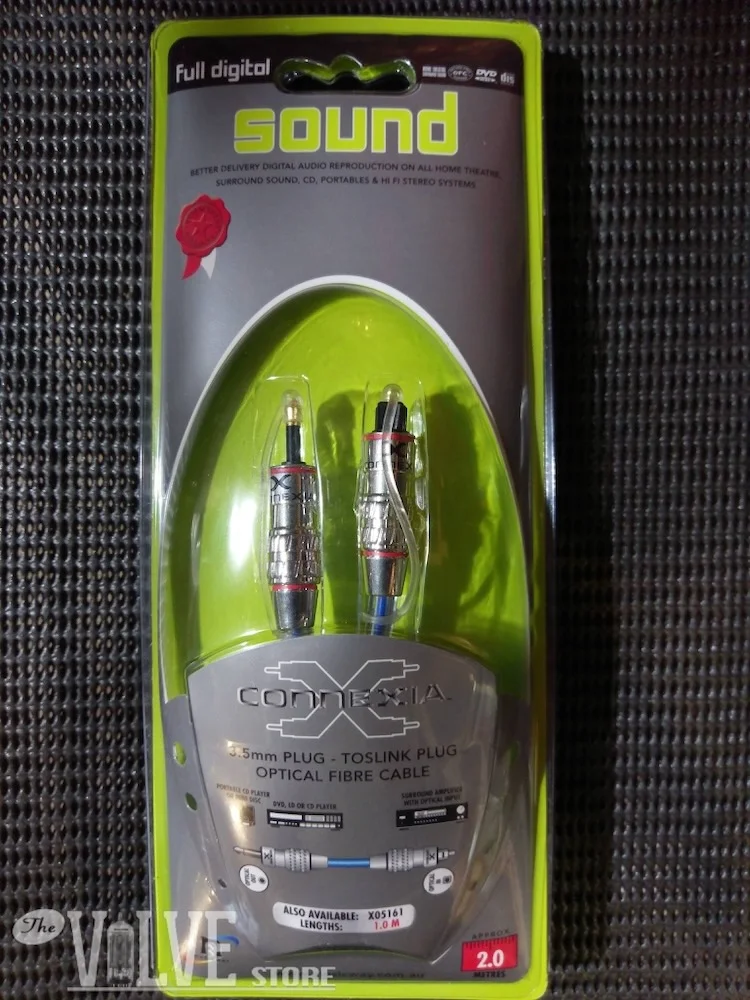 2 metre Mini-Toslink to standard Toslink digital optical audio cable. Connects laptops and portable sources to DACs and AV receivers. Supplied as a single cable.
