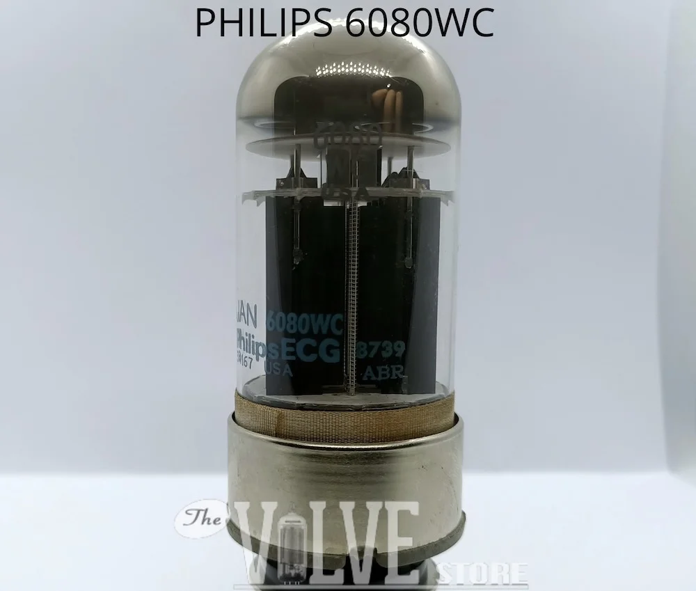 The 6080WC is a ruggedised, mil-spec version of the 6AS7G twin triode, originally manufactured to Joint Army-Navy (JAN) standards for use in regulated power supplies and precision instrumentation. Philips’ US production of this type is highly regarded for its build quality and longevity.
